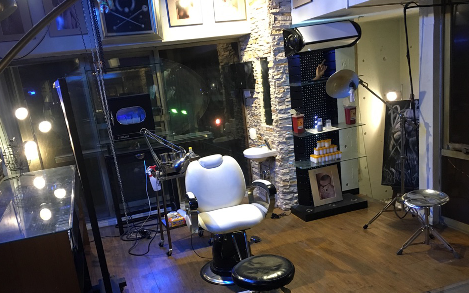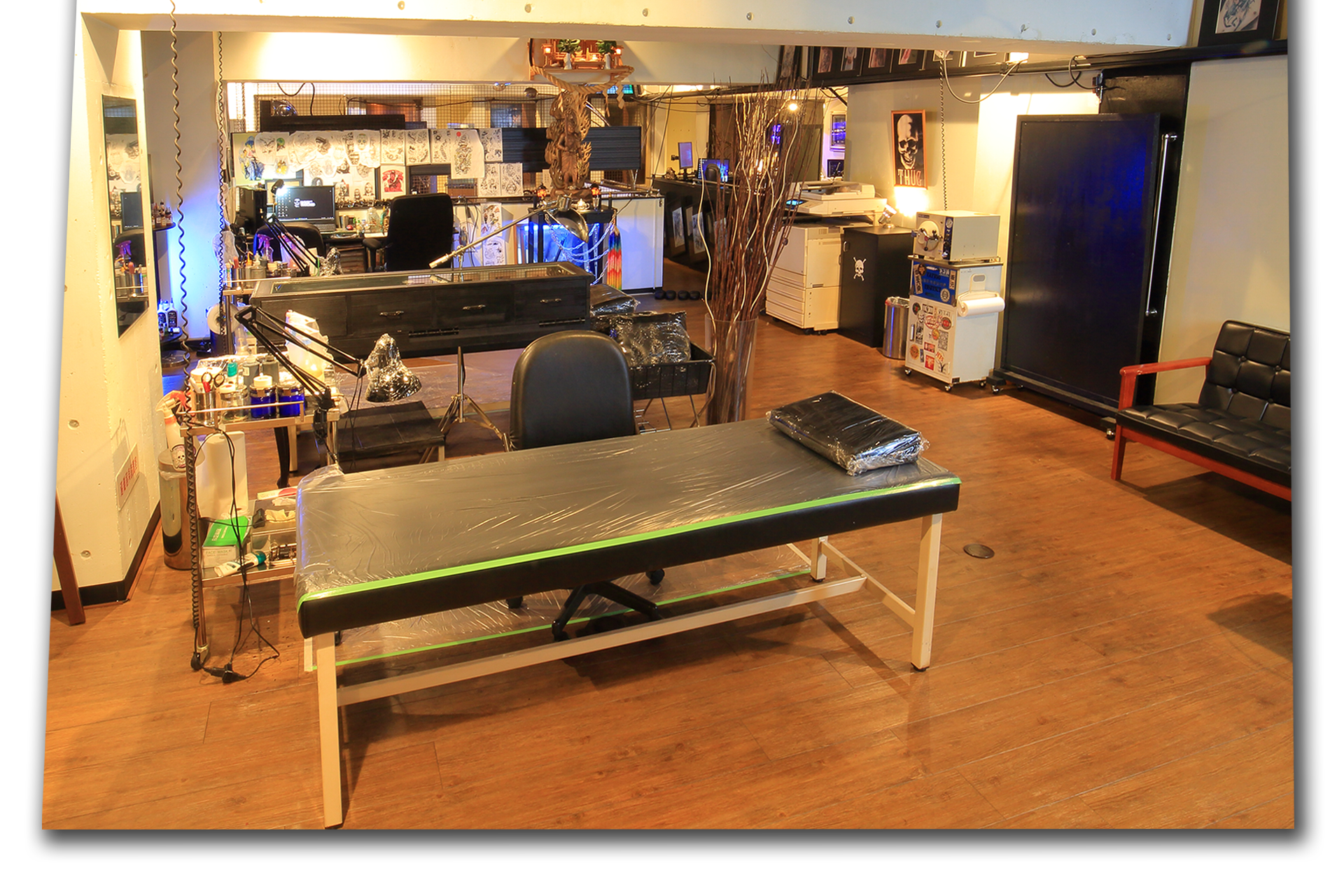 RYUJI TATTOO DESIGN & SSS PIERCINGは、CAFEの二階にある、窓の多い明るい環境の施術専門店です。Tattoo、ピアッシングのブースがあります。