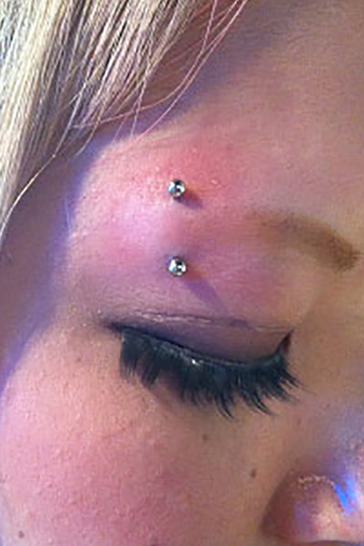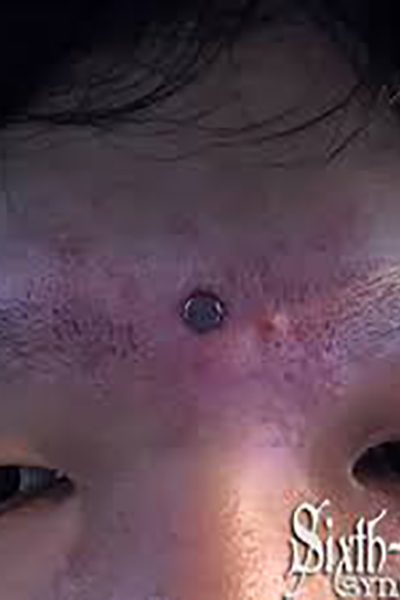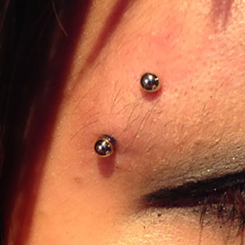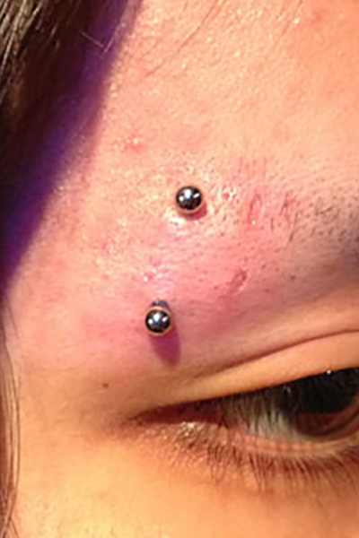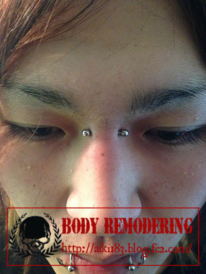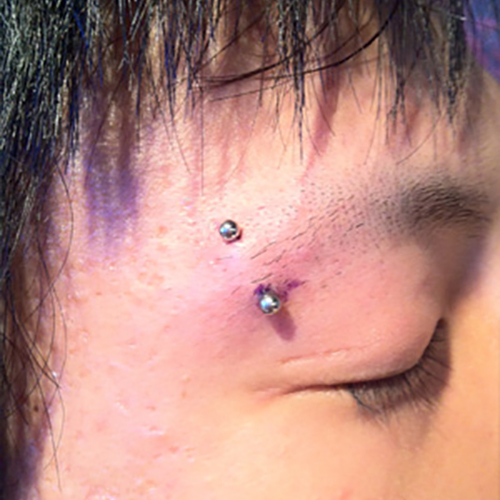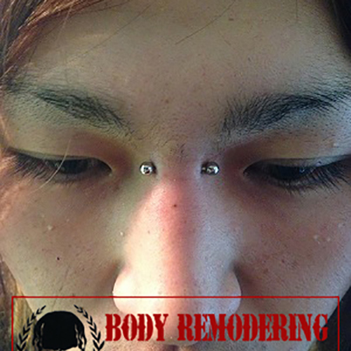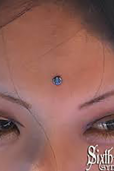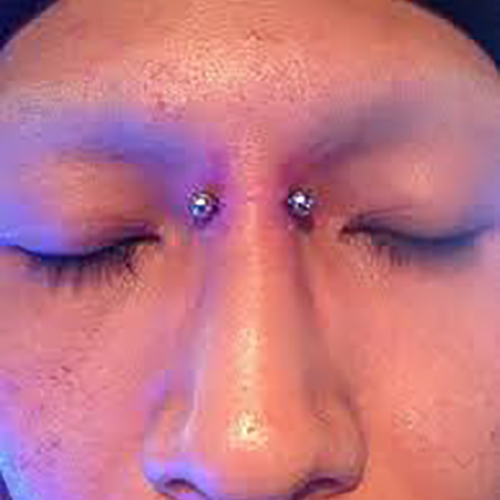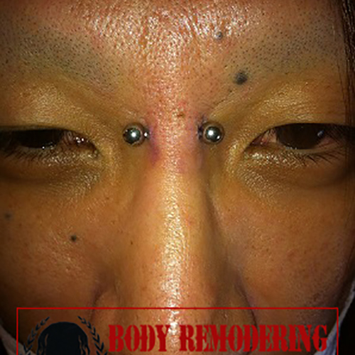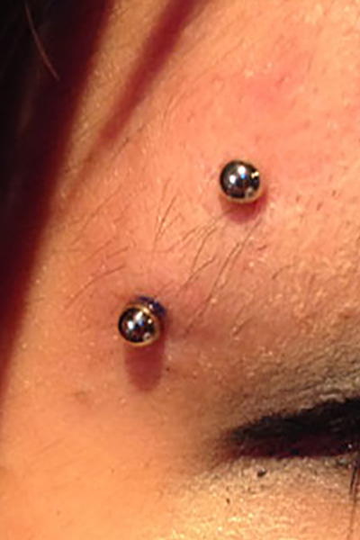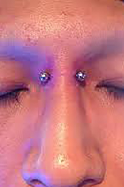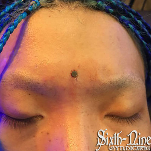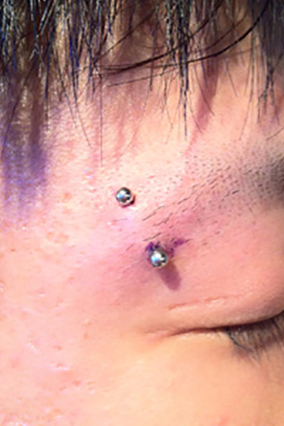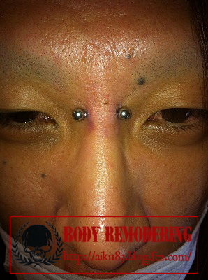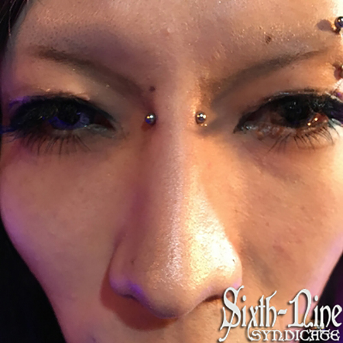 眉間を縦に貫通するピアッシングです。