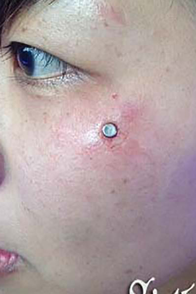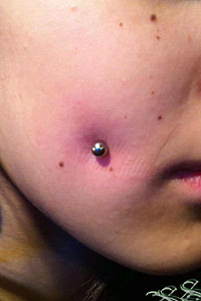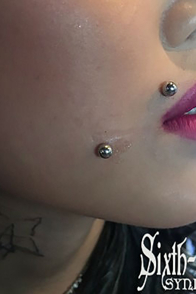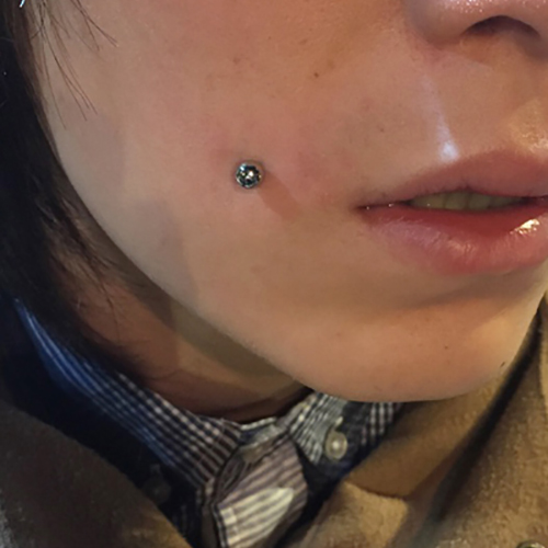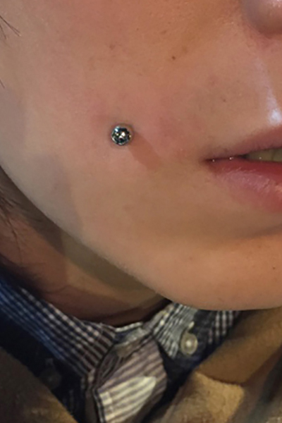頬に行うチークピアッシングです。