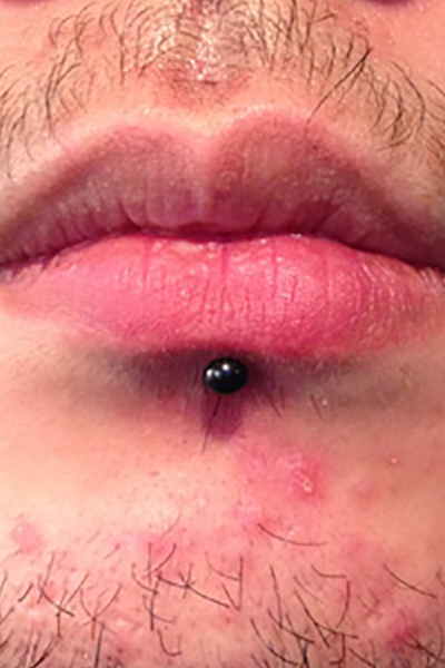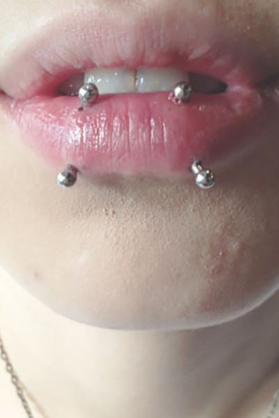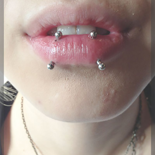治癒の早い口腔内へのピアッシングの中で分厚さ、奥にあることなどから難易度の高いものとなります。